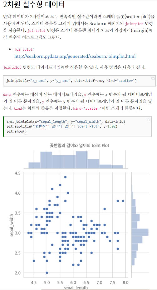 # scatter plot : 각각 단변수와 이변수 값을 시각화하는 가장 기본적인 그래프 중 하나.